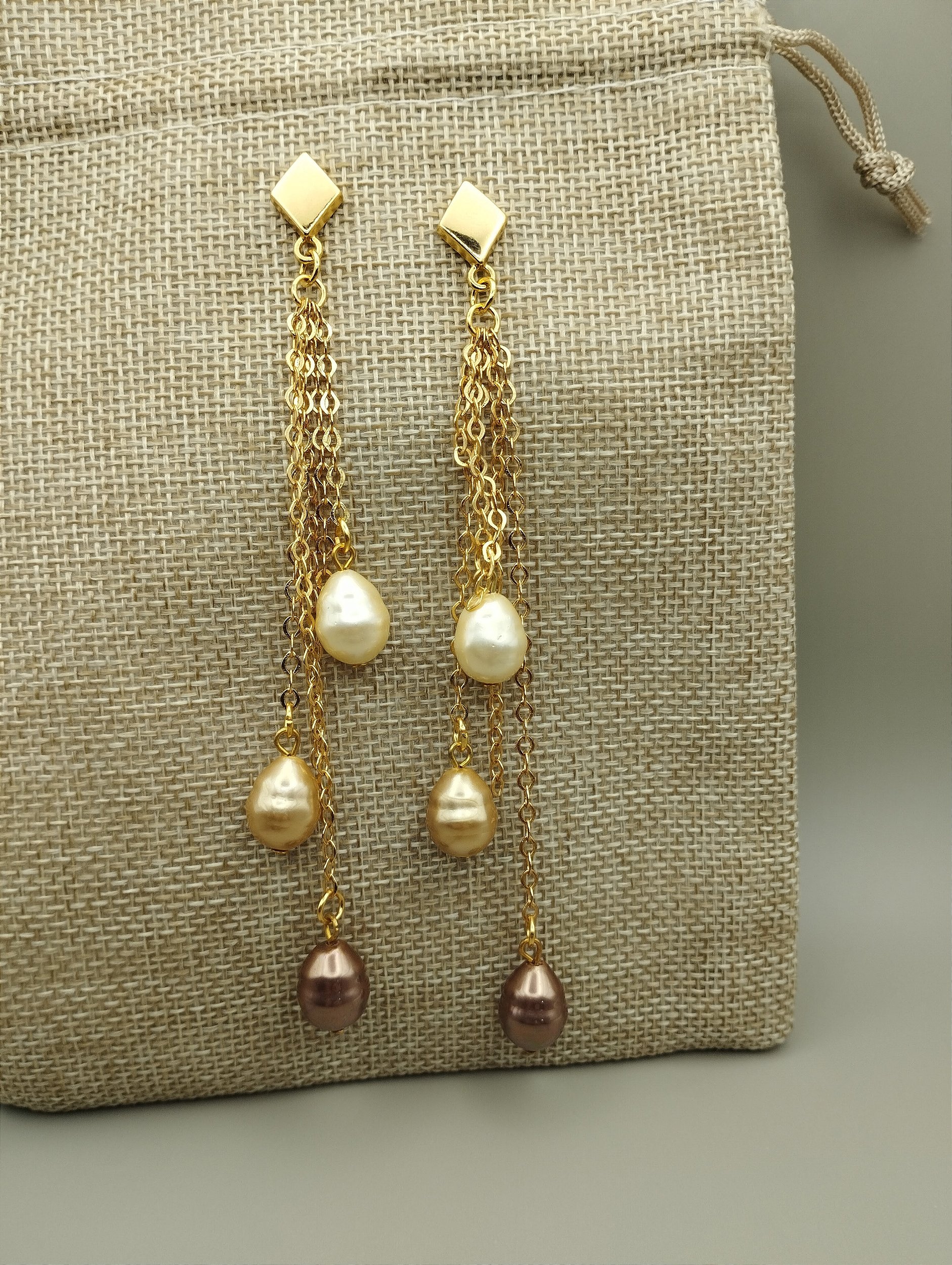 Brinco em metal Zamac banhado em Ouro 18k com pérola de água doce barroca